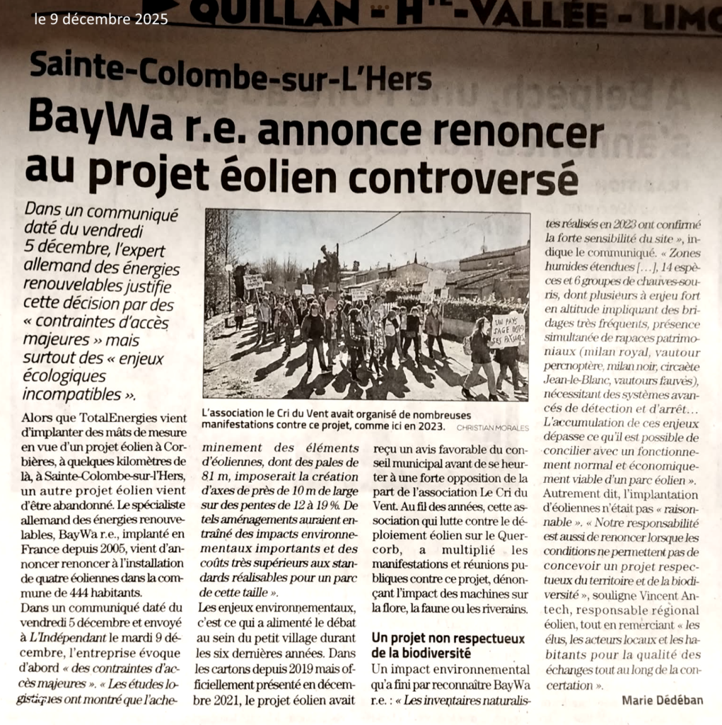 projet de parc éolien porté par la société BayWa r.e. et la commune, se
